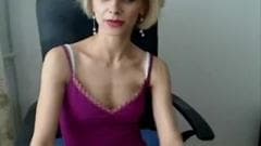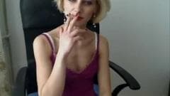 Esta milf sexy loura nos mostra como ela é quente! Ela fuma um cigarro e muda suas roupas na frente da webcam!