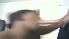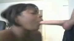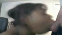 Aqui nós vemos uma mulher negra usando suas habilidades de sucção para pôr a rola de seu homem dura e fazê-lo ejacular na frente da câmera