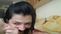 Esta morena quer nos mostrar como ela agrada seu namorado com um boquete e ela faz isso na frente da câmera, então vemos tudo!