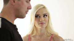 Alex Grey fica de joelhos para chupar rola, mas depois de ele ficar duro ela só quer sentir o seu pau em sua buceta molhada e desfrutar da sua rola!