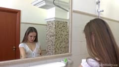 Morena sensual a divertir-se na casa de banho