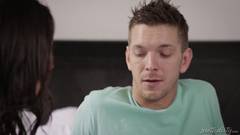 Lily Adams é uma pornstar que sabe como dar um boquete gostoso e ela mostra isso nesta cena, onde ela poe o seu homem duro e fode-o!