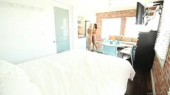 Esse par de moças estão muito excitadas e ao meio-dia, elas vão para o apartamento para foder nuas na cama sem parar.