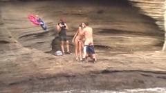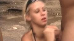 Krystal Steal e Jenna Haze filmadas em uma praia. A chupar e masturbar um cara e levar o seu pau em seus bichanos antes de ele explodir em seus rostos