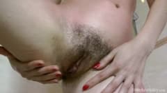 Esta morena deixa que você fique muito perto enquanto ela está se masturbando. Ela tem uma linda buceta peluda para você ver!