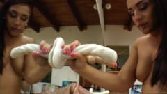 Elas só querem ter um momento agradável, sugando seus dildos e se beijando como lésbicas. Elas ficarão muito entusiasmadas com essa cena pornô.