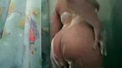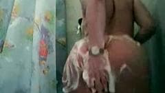 Esta amadora aprecia nada mais do que um bom duche e enquanto ela cobre-se de sabão, fica com tesão com algumas carícias