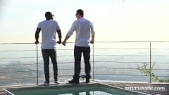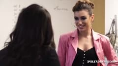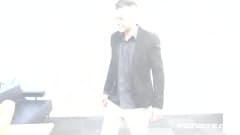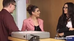 Estas belezas estao no escritório sem vontade para trabalhar e entao começam aos beijos e quando chega outro colega eles nao vao deixar de brincar.