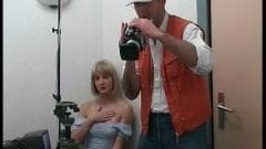 Dois caras mais velhos, uma moça e todos se sentem excitados. Ela goza quando ela fica com a bunda e sua buceta fodida nessa dupla penetração!