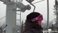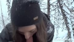 Esta morena está de férias com seu homem e ela quer fazer algo excitante e decide chupar a rola de seu namorado na neve!