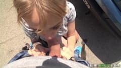 O sexo ao ar livre é algo que essa jovem loira gosta muito, e ainda mais, quando ela é penetrada desse modo, inclinada em cima de um carro.