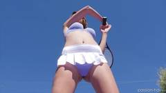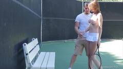 Temos aqui uma divertida rapariga que vai trocar as bolas de ténis com as bolas do seu amigo e vai ser divertido !