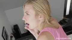 Esta jovem loira està ao telefone e entretanto chega o amigo que enfia o seu pénis na su deliciosa buceta.