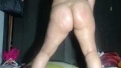 Esta gordinha coloca oleo e mostra seu corpo para nós enquanto dança em frente da câmera para nos provocar!