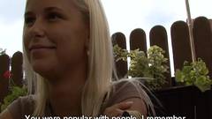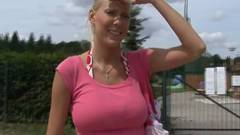 Esta mulher loira é fodida ao ar livre e consegue excitar este homem que acaba por gozar na cara dela. Será muito bem penetrada.