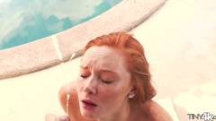 Esta ruiva bonita está ao ar livre desfrutando de uma boa foda com seu homem que, em seguida, cobre seu rosto lindo com porra!