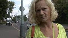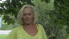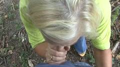 Avó loira fica de joelhos para chupar e ela faz seu homem tão excitado e ela não pode esperar para fodê-lo, assista e desfruta!