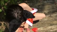 Esta morena está disfarçada de sua personagem de manga favorita e ela fode seu parceiro ao ar livre, muito excitada!