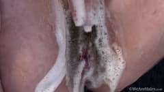 Jenny Davies dá-se uma massagem enquanto toma banho e está toda nua e nos mostra sua buceta peluda e muito saborosa. Nao perca!