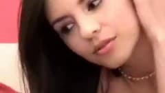 Esta latina realmente sexy enfia alguns dedos em sua bichana e depois um pequeno amigo prateado atrás dela.