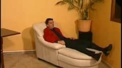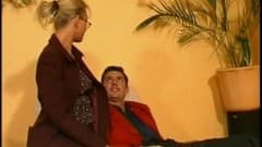 Uma loira peituda é fodida e este cara quer que ela use seus óculos. É bom para ela porque ele os espalha no rosto dela.