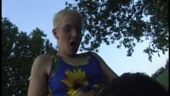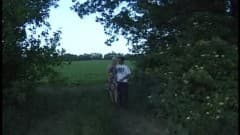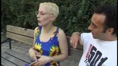 Uma mulher madura, de cabelos brancos duros e óculos, gosta de estar na natureza e fica suja. Não há nada mais sujo do que uma foda na floresta.