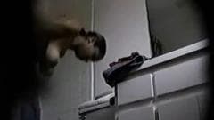 C'est une milf magnifique et bien dotée qui va changer de detenu dans la salle de bain, mais elle est filmée sans le savoir