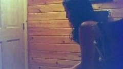 Esta amadora não faz ideia de que ela esteja sendo observada enquanto ela sai do banho e seca seu corpo nu!