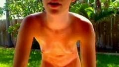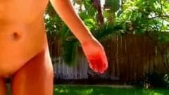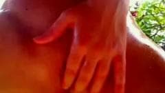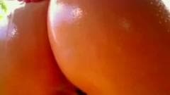 Morena de cu gostosão dando show para a webcam no jardim de sua casa. Ela agora adora mostrar a sua bela bunda toda oleada