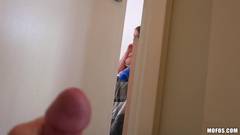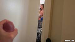 Uma bonita e sensual jovem masturba-se deliciosamente, enquanto um voyeur escondido bate uma valente punheta cheio de tesão ao ver o prazer dela !