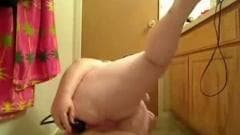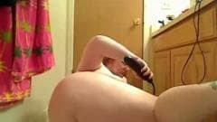 Essa mulher gordinha está cheia de desejo e fica se masturbando sua buceta gostosa com um dildo bem grande e grosso no banheiro.