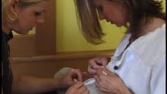 Um casal de lésbicas vai lá para cima para o seu quarto. Lá eles experimentam seus bichanos e colocam alguns brinquedos.
