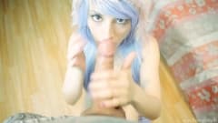 O que essa emo que tem o cabelo pintado de azul gosta mais, é poder chupar o pau de um homem que vai gozar muito mais do que imagina!
