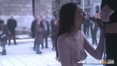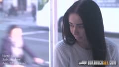 Esta bela morena quer excitar muito este homem dentro de um camião com paredes de vidro, onde você se pode ver a rua enquanto eles fodem.