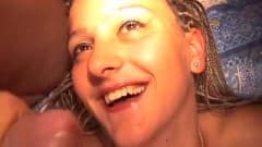 Uma jovem estudante loira é passada de um lado para o outro até que finalmente ela seja duplamente penetrada no quarto.