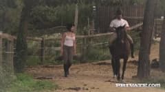 Esta mulher espera que este homem saia de seu cavalo para transar com ela, já que ela se sente muito quente em seu corpo e quer o melhor sexo.
