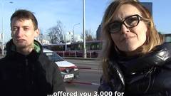 Esta mulher está muito interessada em ganhar algum dinheiro e, portanto, aceita a proposta indecente desses dois caras que querem sexo oral.