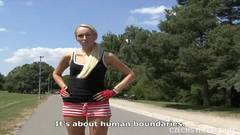 Este cara sabe que o melhor que pode acontecer é que uma loira de rua se entregue no parque ao ar livre. Ela é uma cadela muito gostosa.