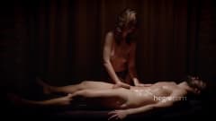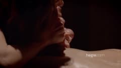 Ela é uma bela puta que sabe como dar uma massagem intensa e é isso que vemos nessa cena enquanto ela o masturba, mas não pode fazê-lo ejacular!