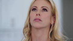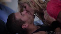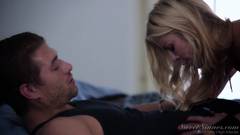 Esta loira vai ter uma sessão sexual muito escaldante na cama com um homem que está cheio de tesão. Voce vai adorar.