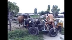 Esta é uma sessão de sexo no campo, em que este homem vai gostar muito de foder uma mulher nua em um trator. É um momento gostoso!