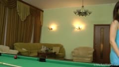 Vamos ver essa morena excitada masturbando-se muito na mesa de bilhar, onde ela está completamente nua para se tocar.