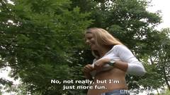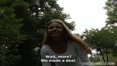 Essa safada russa ama demasiado o dinheiro, e ela consegue-o da maneira mais fácil, entregando-se a quem a pagar por foder neste parque.