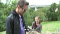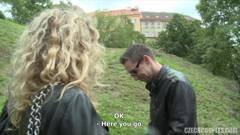 Este é um casal de tchecos, que aceitou o desafio de foder ao ar livre nesta cena. Vamos ver como eles fazem isso em troca de algum dinheiro.