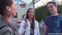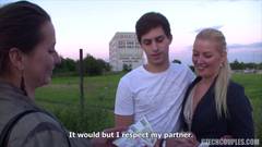 Desta vez, veremos uma mulher que procura nas ruas um casal que quer foder na frente da câmera em troca de algum dinheiro.