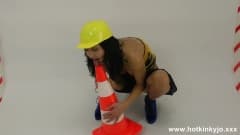 Esta bela morena vai gostar de sentir prazer entre as pernas, usando um cone de segurança para se masturbar. Ela é uma moça muito bonita!