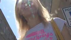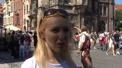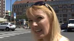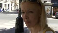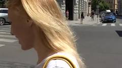 Esta é um turista loira que caminha pelas ruas até conseguir um homem que faz uma proposta sexual irresistível.