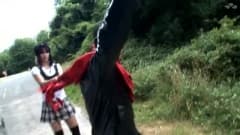 Um casal de namorados cheios de tesão dá boleia a uma puta e levam ela para o meio do bosque onde vão fazer um menage ao ar livre.