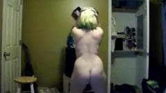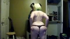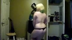 Este será um show muito sexy na frente da câmera, com uma loira gordinha que mostra seu traseiro e o resto do corpo quente e gostoso.