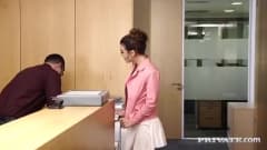 Duas colegas de trabalhar bem vistosas decide aquecer uma à outra para que depois seu patrão as comer bem molhadinhas e prontas para pau